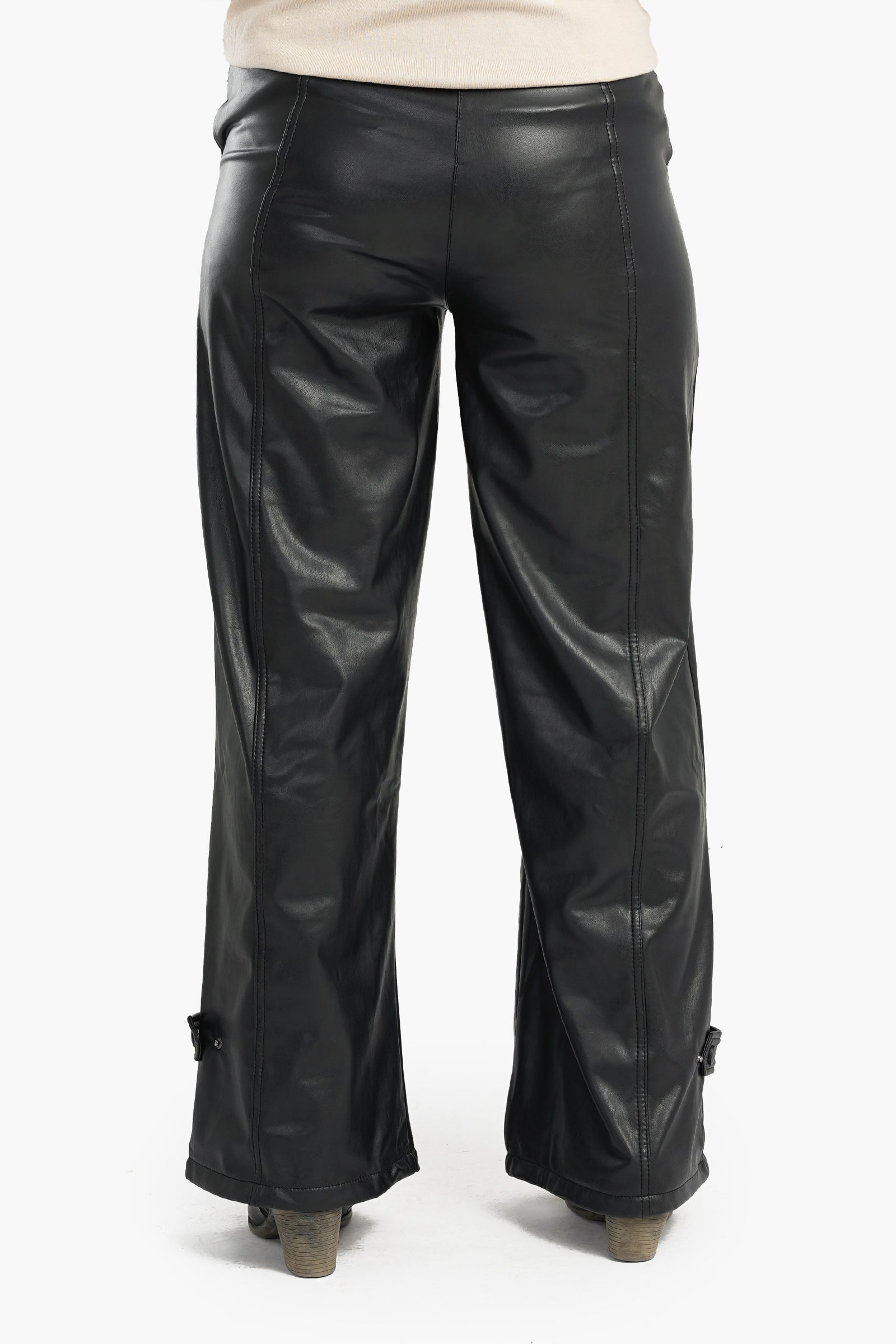 - Monochrome Elegance: Create a sleek monochrome look by pairing the leather pants with a black or white blouse. The wide leg cut creates a flowy silhouette, while the solid pattern allows you to experiment with textures. Add strappy heels or pointed-toe flats and a tailored blazer to complete the polished, modern ensemble.