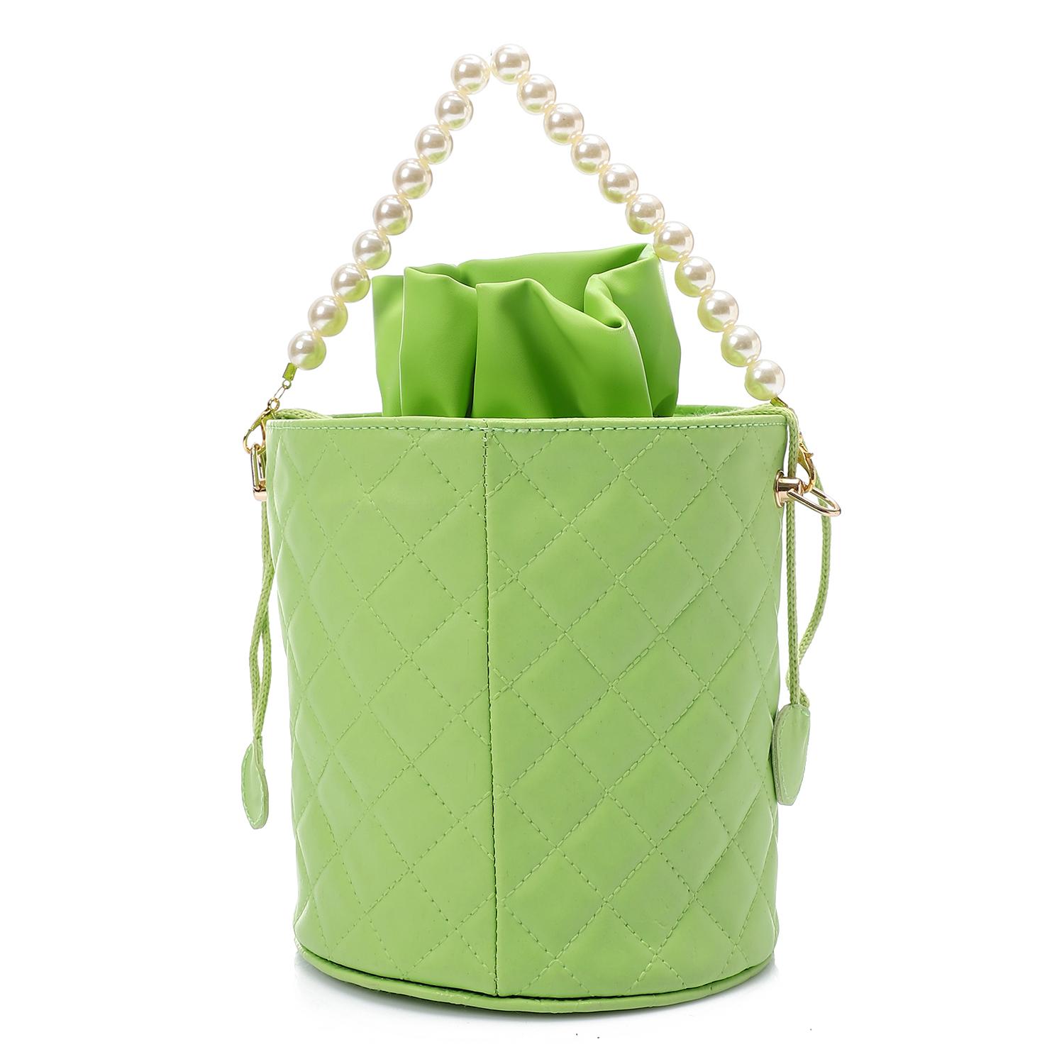 Faux leather Bucket Bag with Pearl Handle - Mint