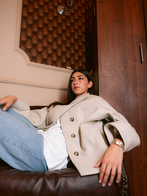 Wool Asymmetric Button Jacket – Light Grey