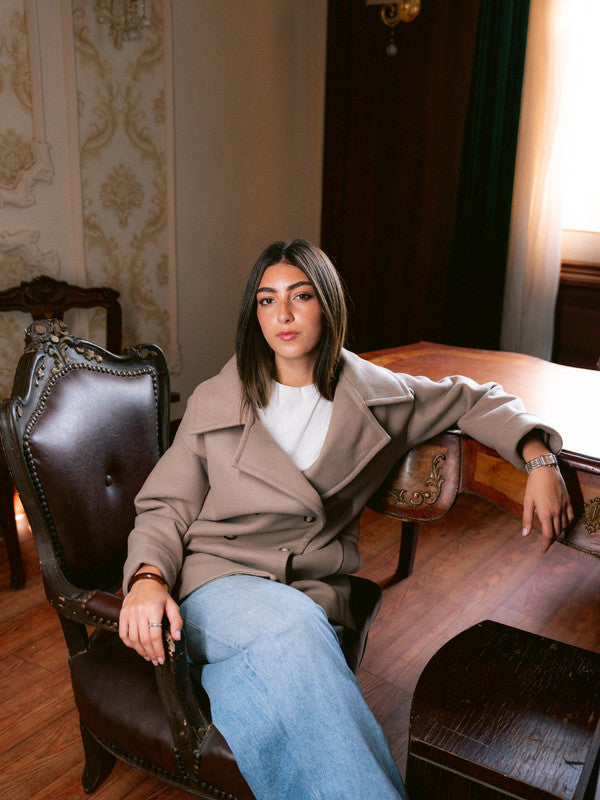 Wool Double-Breasted Jacket – Light Beige