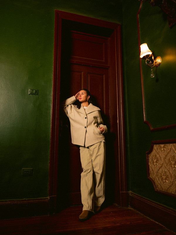 Wool Solid Button Jacket – Light Beige