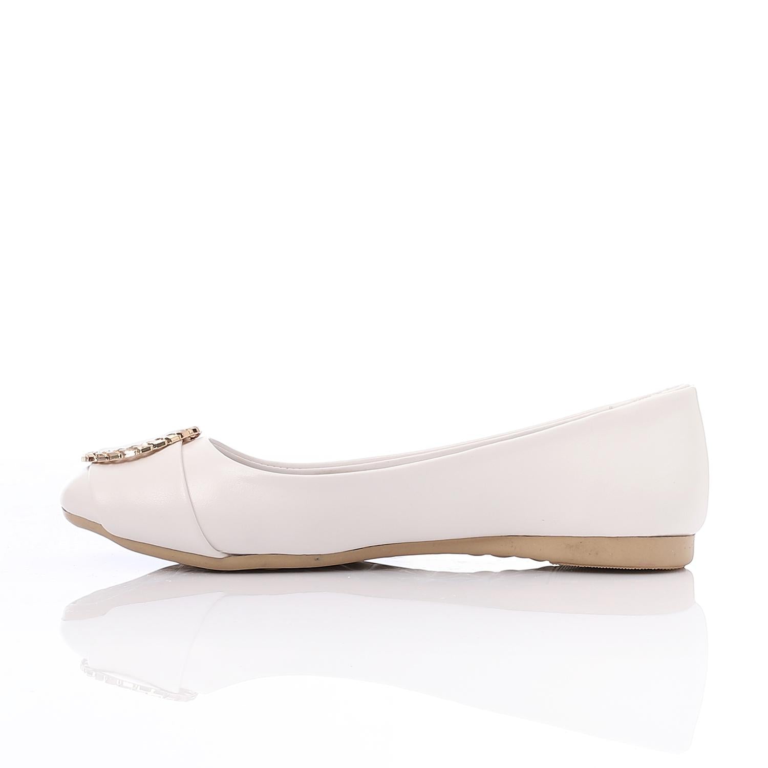 Faux Leather Round-Toe Flat - White