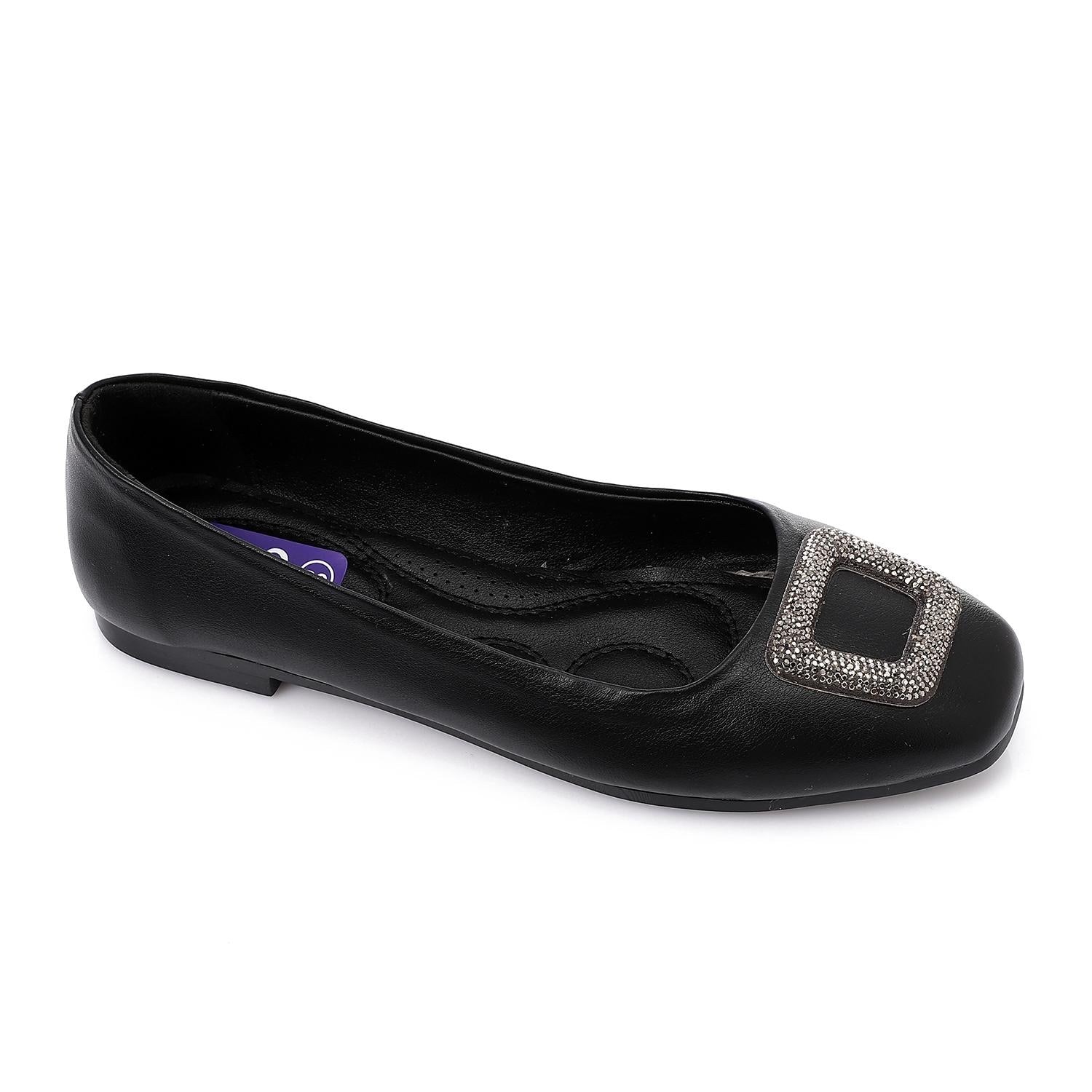 - Key Features: Rhinestone buckle detail, shiny metallic finish, modern square toe, comfortable flat sole.